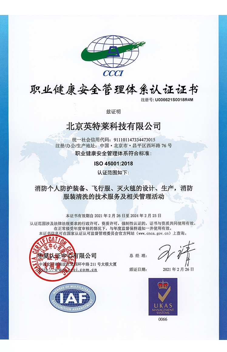 OCCUPATIONAL HEALTH AND SAFETY MANAGEMENT SYSTEM CERTIFICATE--UKAS-CHINESE